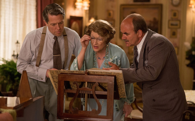 As I stated earlier, Grant is doing a fine job here so I’m not criticizing his acting ability, but I am critical of this writer and director on what they decided to do with St. Clair Bayfield. The character is initially introduced as a philandering asshole who takes advantage of his wife’s large fortune to afford his own apartment blocks away from Jenkins where he keeps his alcoholic mistress around. You then see the lengths he’s willing to go to ensure that his wife’s performances are well received and she never hears of any hints that she can’t freaking sing. You also find that the reason he keeps this ridiculous charade up is because he finds it all fun.