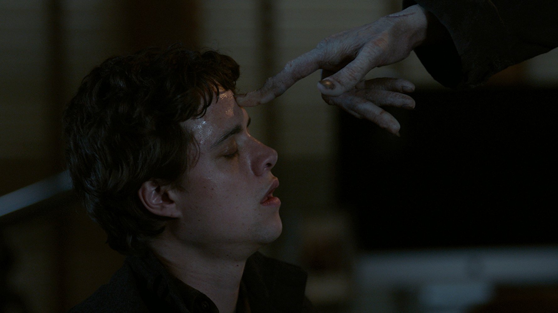 So college dipshit Elliot (Douglas Smith) moves off campus into a very large home with his acting-deficient girlfriend, Sasha (Cressida Bonas), and his much better looking friend, John (Lucien Laviscount). The house also happens to be haunted (why the hell wouldn’t it be?) and after hearing mysterious coins dropping everywhere, Elliot discovers a drawer inscribed with the mantra “Don’t think it, don’t say it” over and over again. Peeling deeper, he discovers the name “The Bye Bye Man,” and says it out loud during a seance conducted by Sasha’s friend, Kim (Jenna Kanell). This triggers the four college students to experience powerful hallucinations all orchestrated by the Bye Bye Man (Doug Jones) who…doesn’t do anything to these kids. He mostly has a creepy looking face and points at them and let’s them experience badly acted hallucinations for the purpose of…God only knows what.